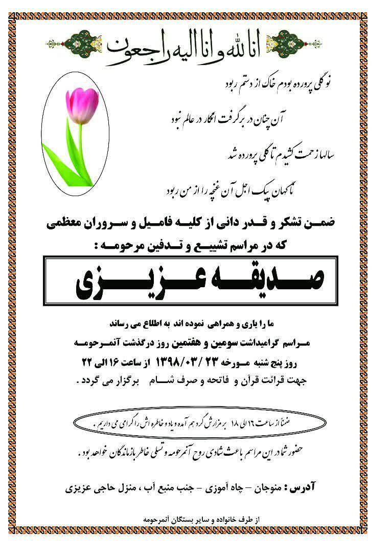 پیام تسلیت درگذشت دانشجومعلم صدیقه عزیزی