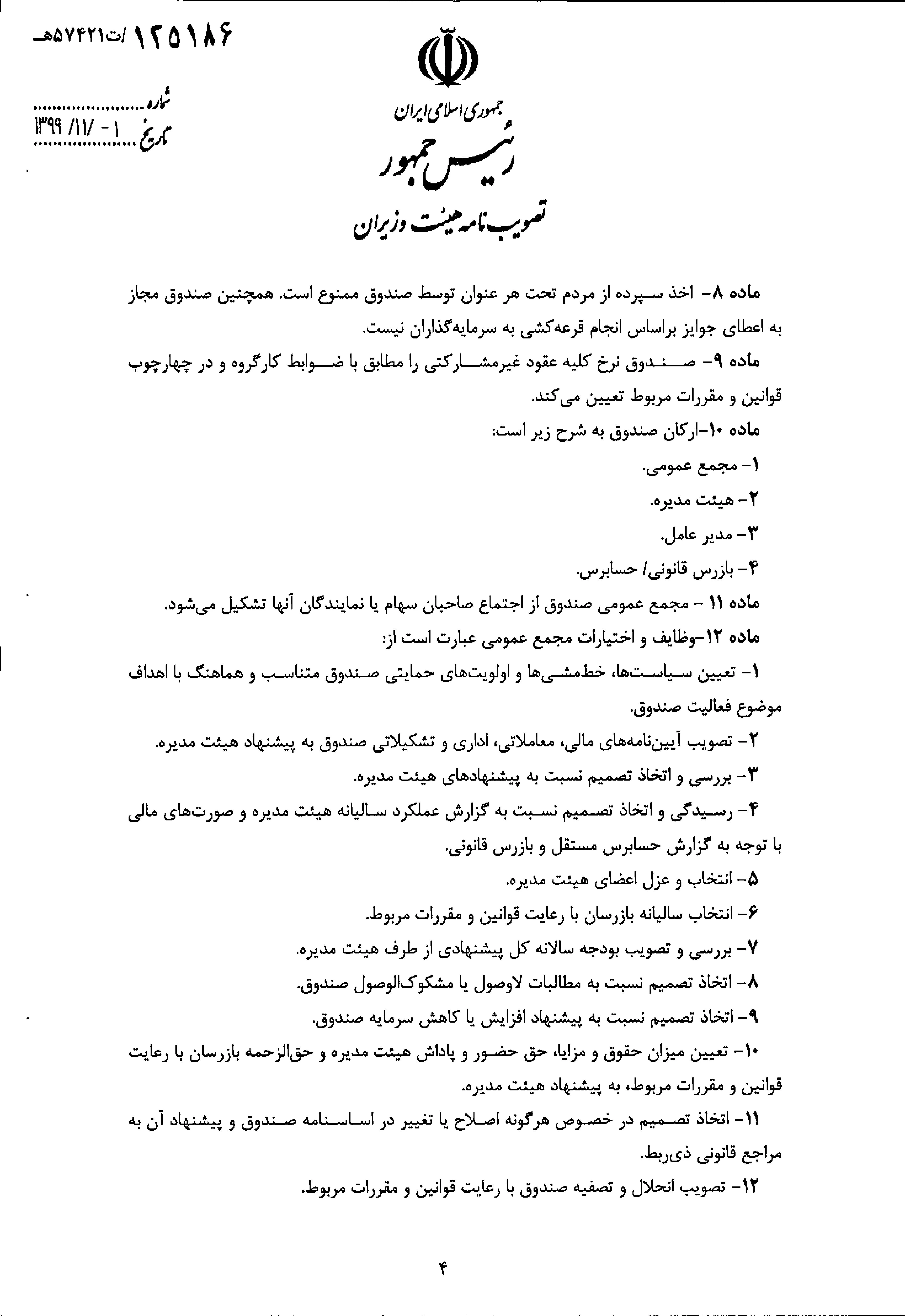 " تصویب نامه هیات وزیران درخصوص اساسنامه نمونه صندوق های پژوهش و فناوری غیردولتی" 4