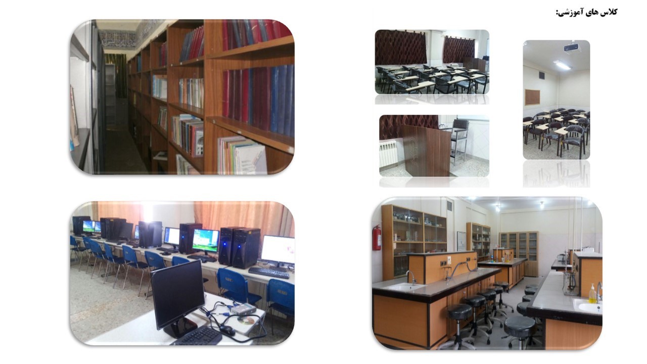 - آزمایشگاه های فیزیک، شیمی، زیست و زمین شناسی