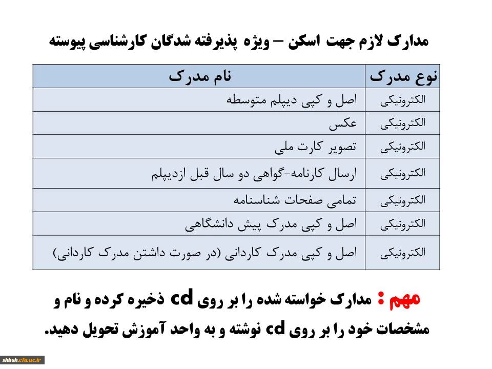 مدارک ثبت نام الکترونیکی کارشناسی پیوسته