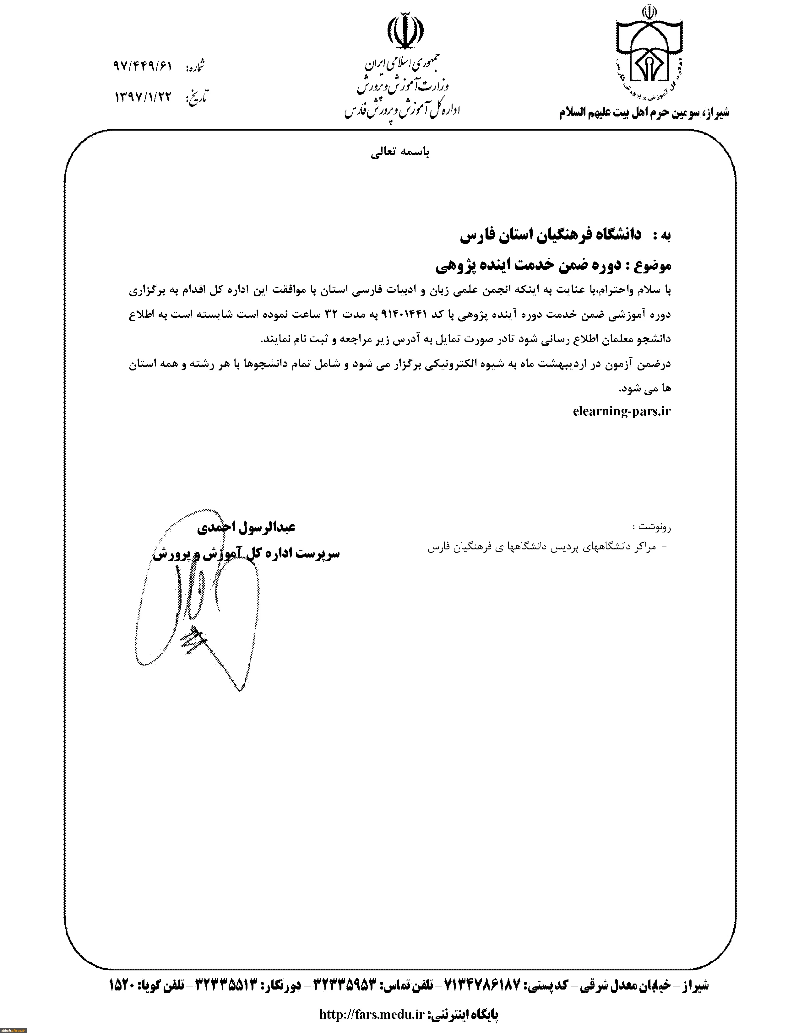 ساعات پاسخگویی به مراجعین محترم
