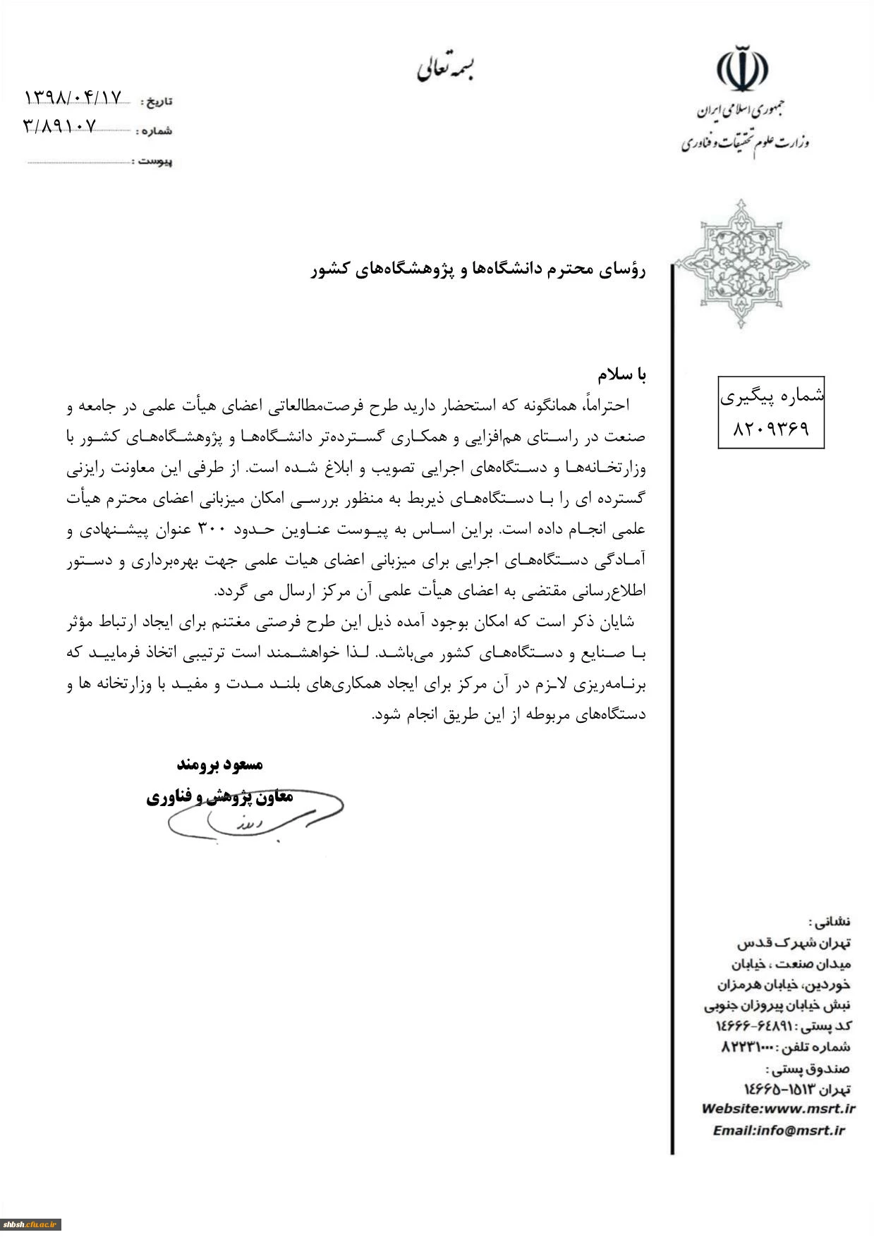 ساعات پاسخگویی به مراجعین محترم