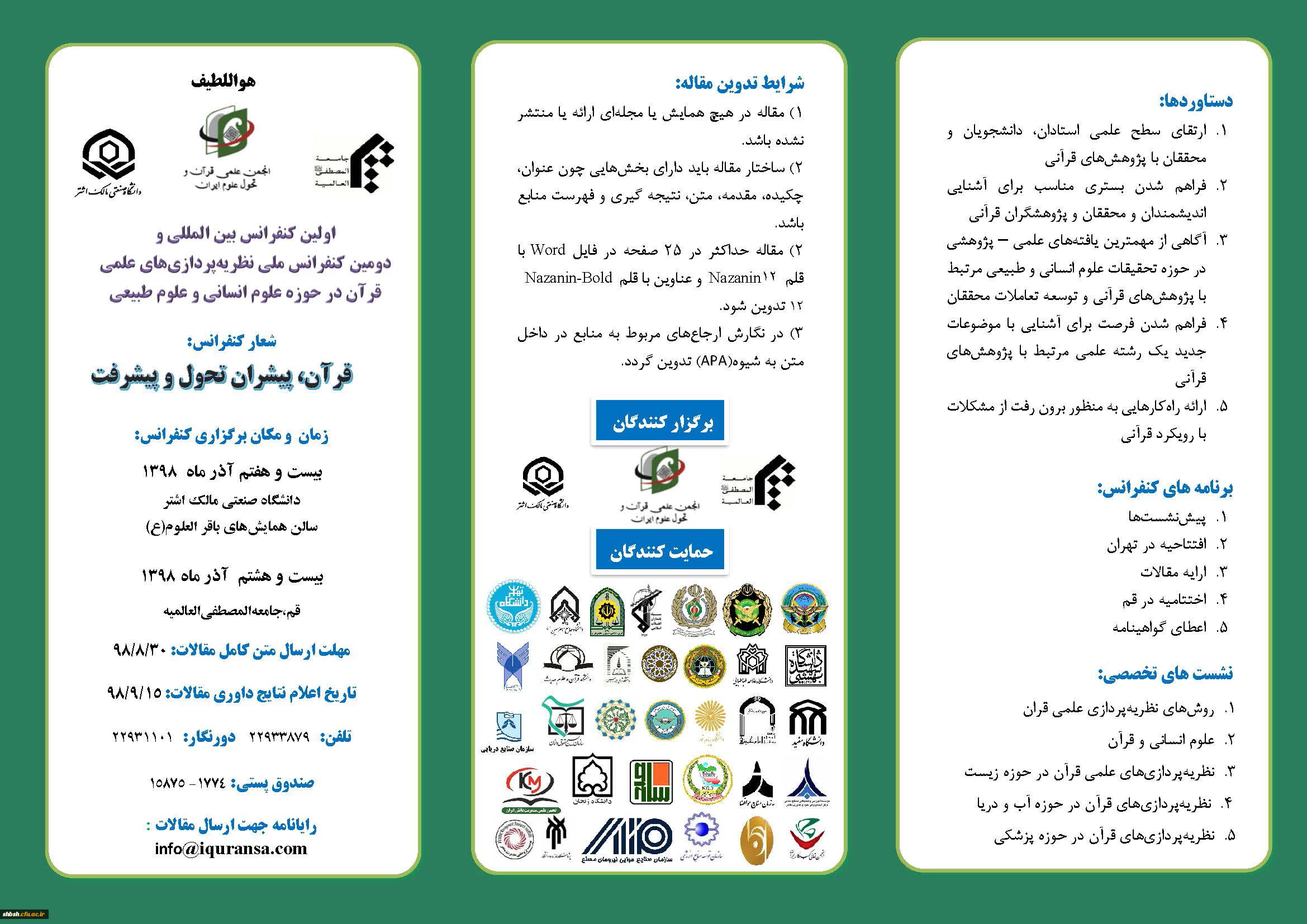 امتیاز دهید : اولین کنفرانس بین المللی نظریه پردازی های علمی قرآن، در حوزه علوم انسانی و طبیعی 4 چهارشنبه 27 شهریور 1398 ساعت 12:12