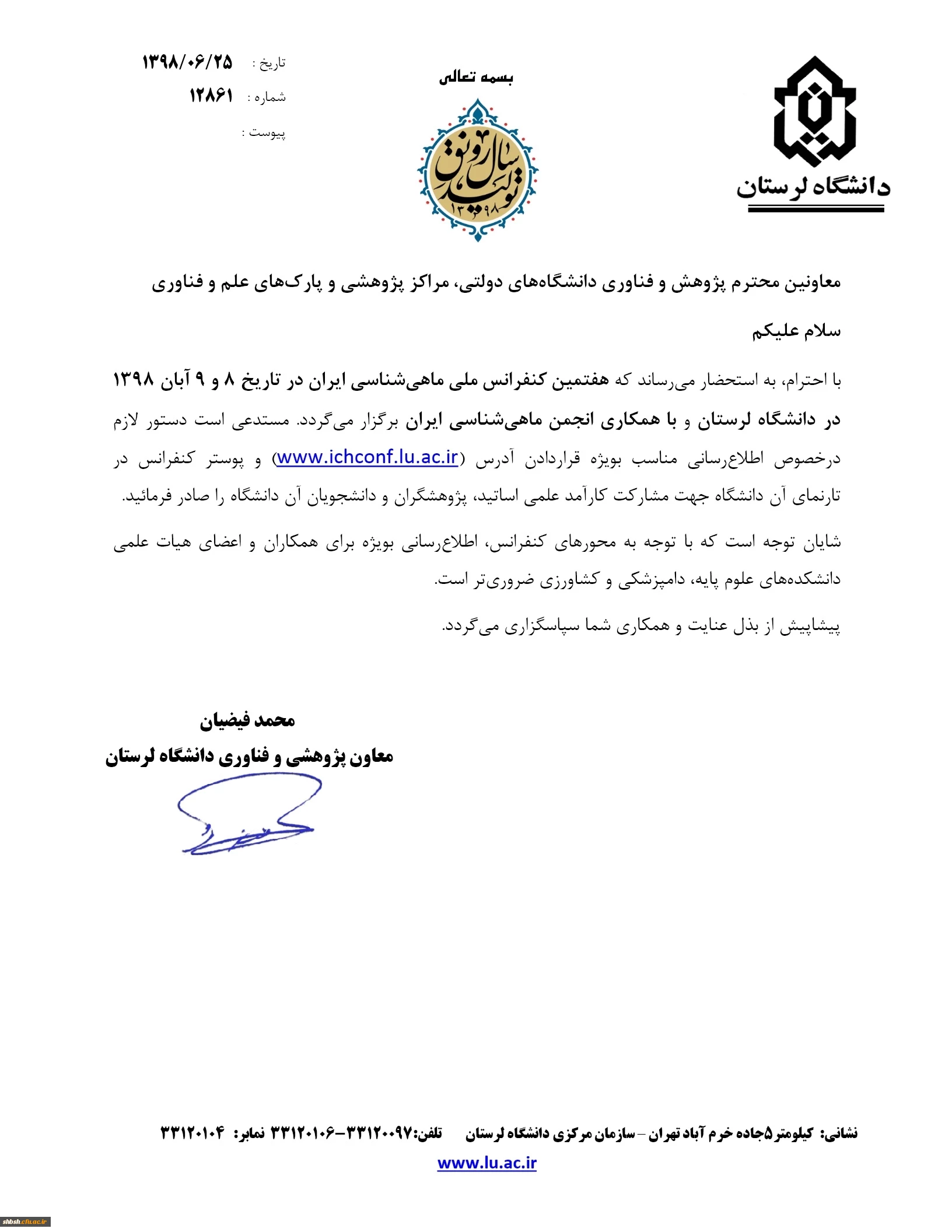 فراخوان پوستر 7 کنفرانس ملی ماهی شناسی ایران 2