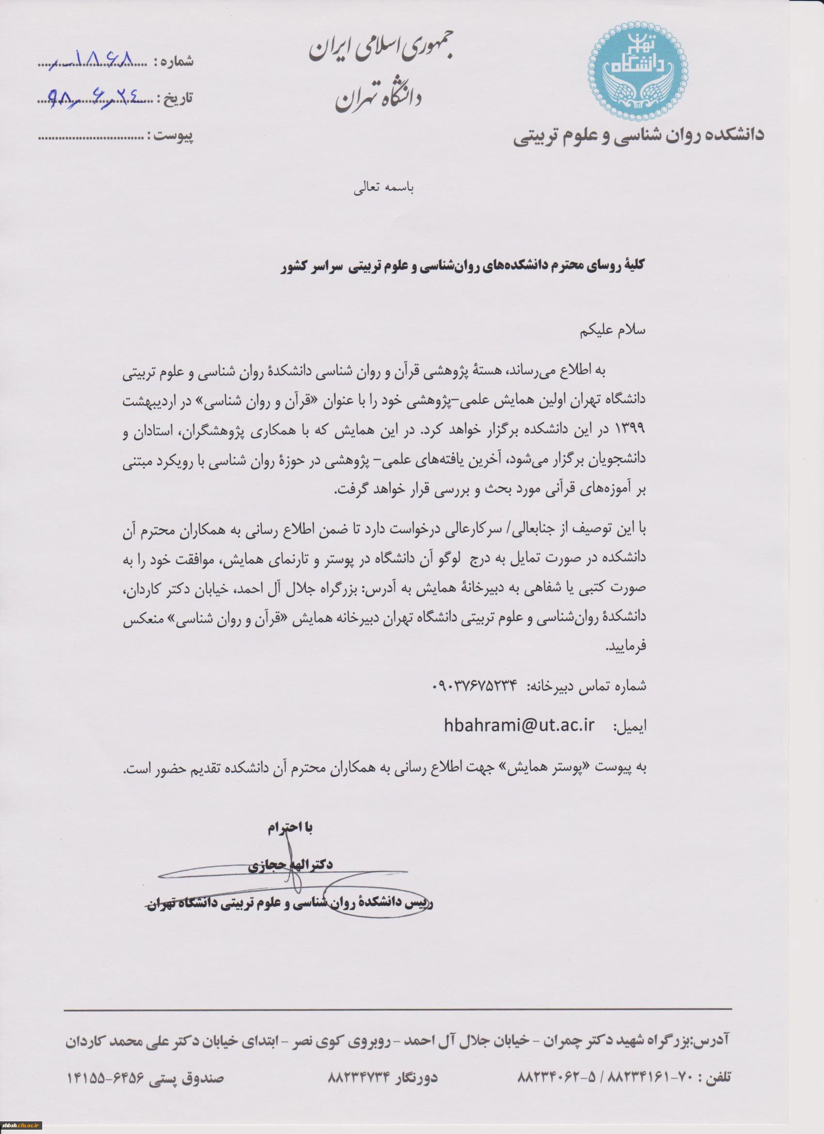امتیاز دهید : همایش " قرآن و روان شناسی" در دانشکده روان شناسی و علوم تربیتی دانشگاه تهران 2 دوشنبه 8 مهر 1398 ساعت 11:39
