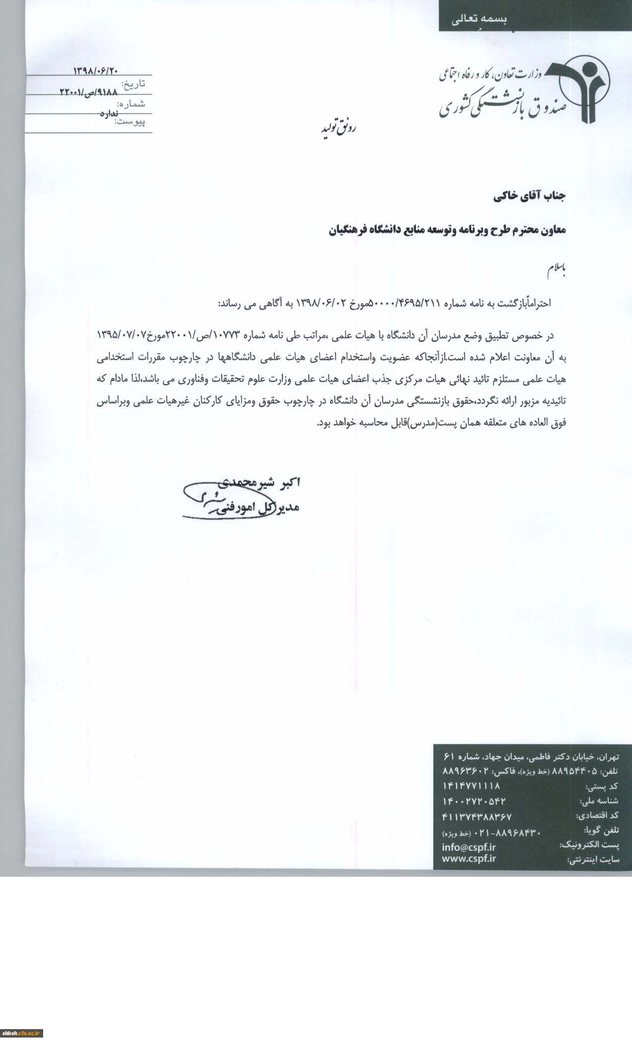 بخشنامه در خصوص اعضای هیئت علمی تطبیقی 3