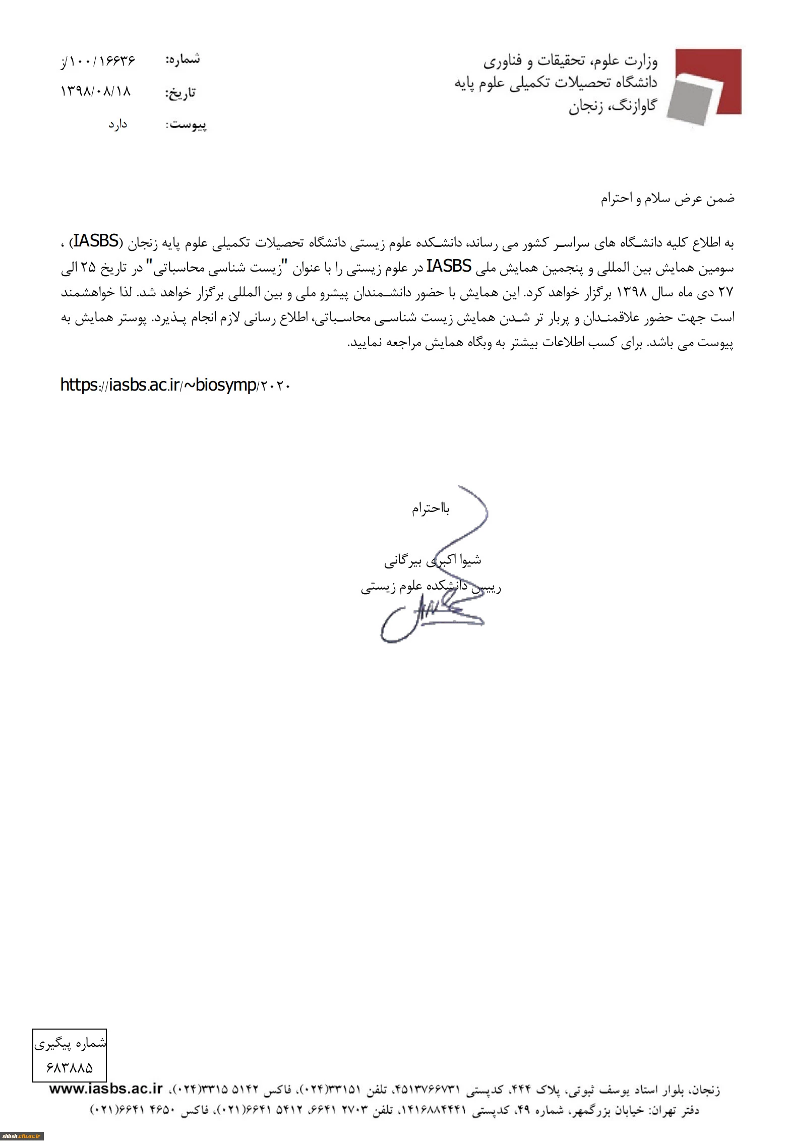 اطلاع رسانی همایش زیست شناسی محاسباتی 2