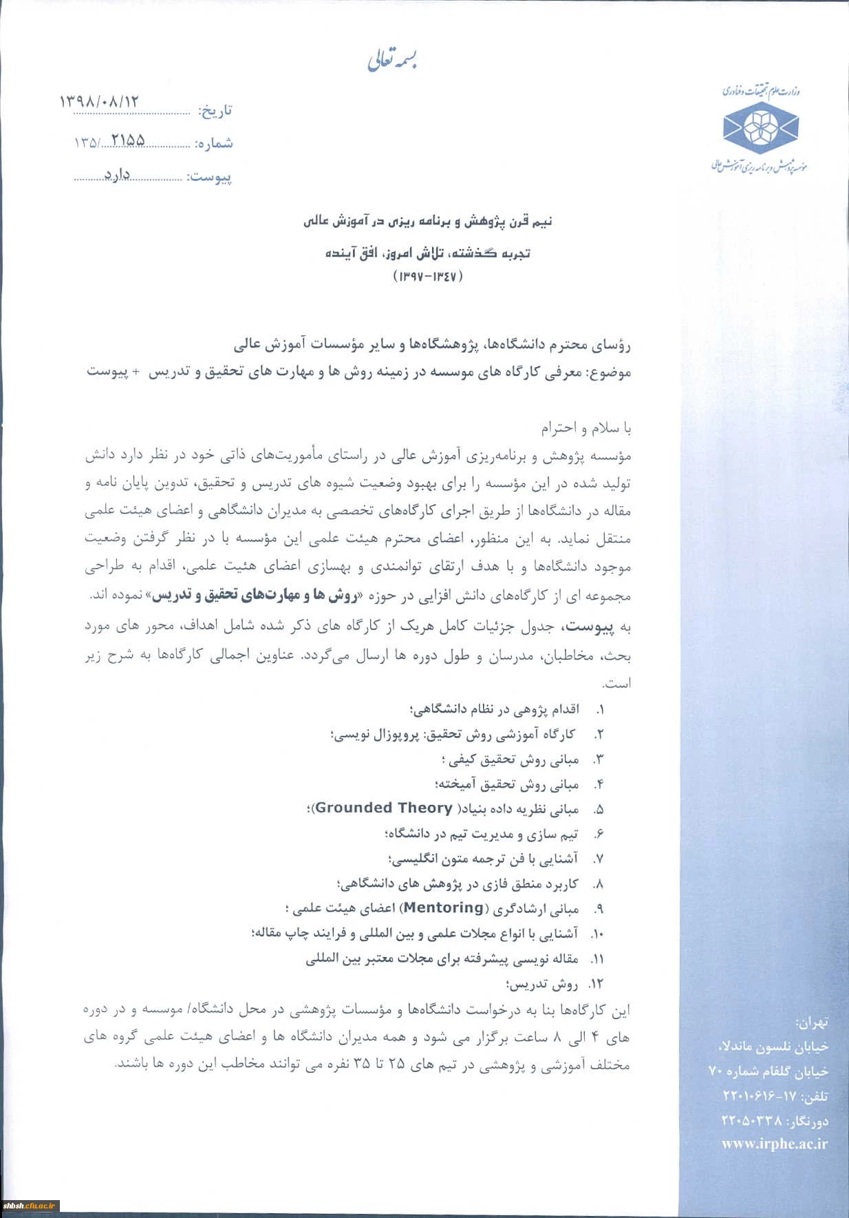 امتیاز دهید : فراخوان معرفی کارگاه های موسسه در زمینه روش ها و مهارت های تحقیق و تدریس 2 سهشنبه 5 آذر 1398 ساعت 14:35
