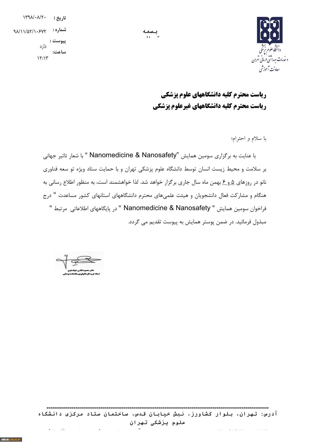 فراخوان همایش Nanomedicine and Nanosafety 2