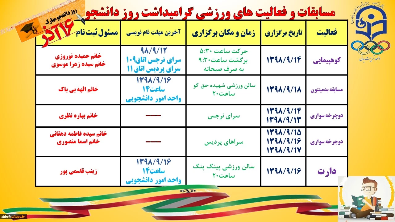 مسابقات و فعالیت های ورزشی گرامیداشت روز دانشجو 2
