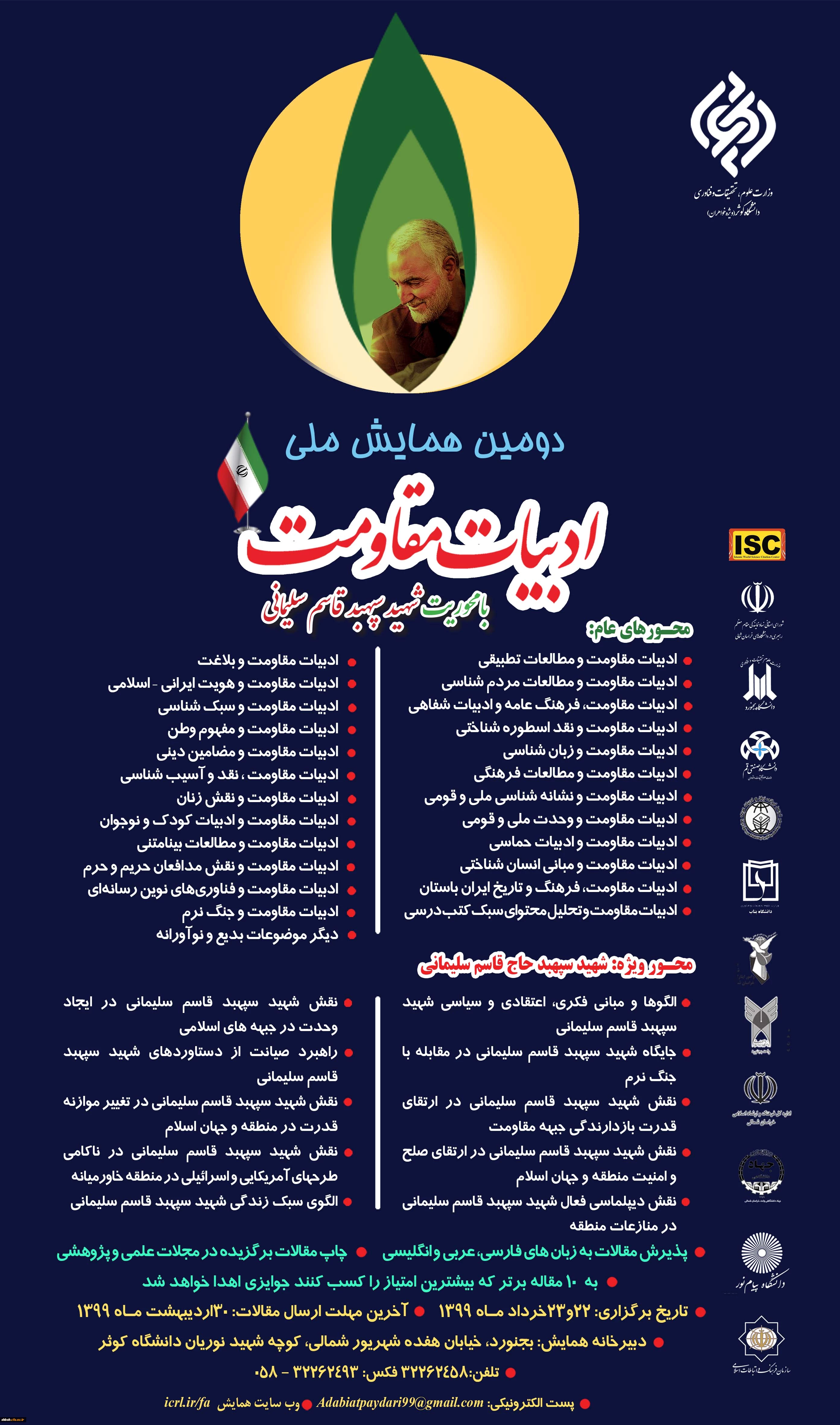 امتیاز دهید : فراخوان دومین همایش ملی ادبیات مقاومت با محوریت شهید سپهبد قاسم سلیمانی 2 چهارشنبه 2 بهمن 1398 ساعت 8:22