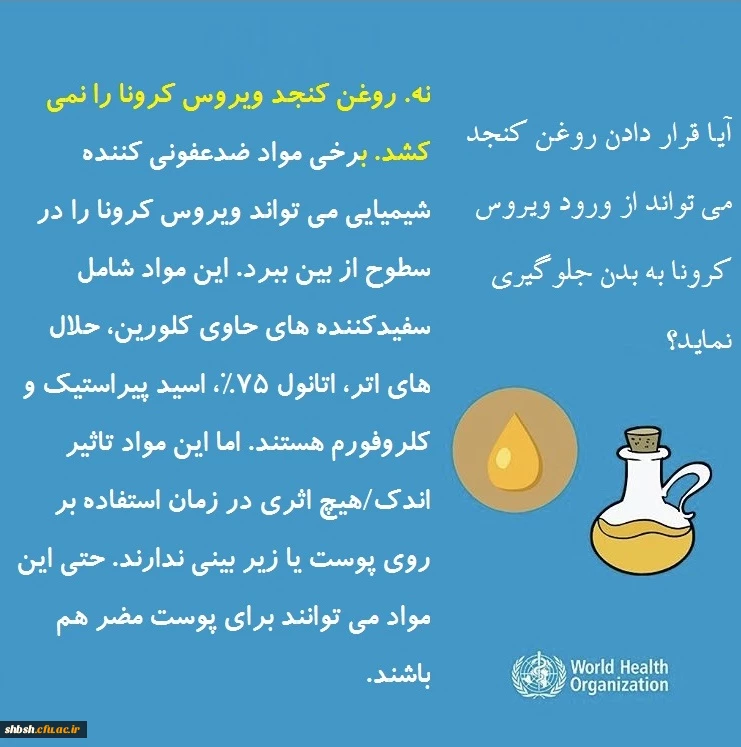 امتیاز دهید : پاسخ سازمان جهانی بهداشت (WHO) درخصوص برخی باورها درمورد ویروس کرونا 7 چهارشنبه 16 بهمن 1398 ساعت 13:35