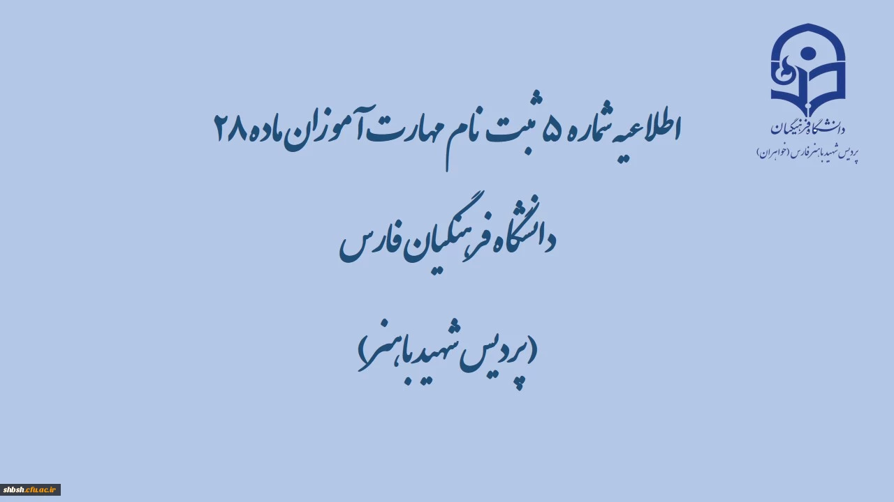 امتیاز دهید : اطلاعیه شماره 5 ثبت نام مهارت آموزان ماده 28 دانشگاه فرهنگیان فارس( پردیس شهید باهنر) 2 شنبه 13 اردیبهشت 1399 ساعت 12:44