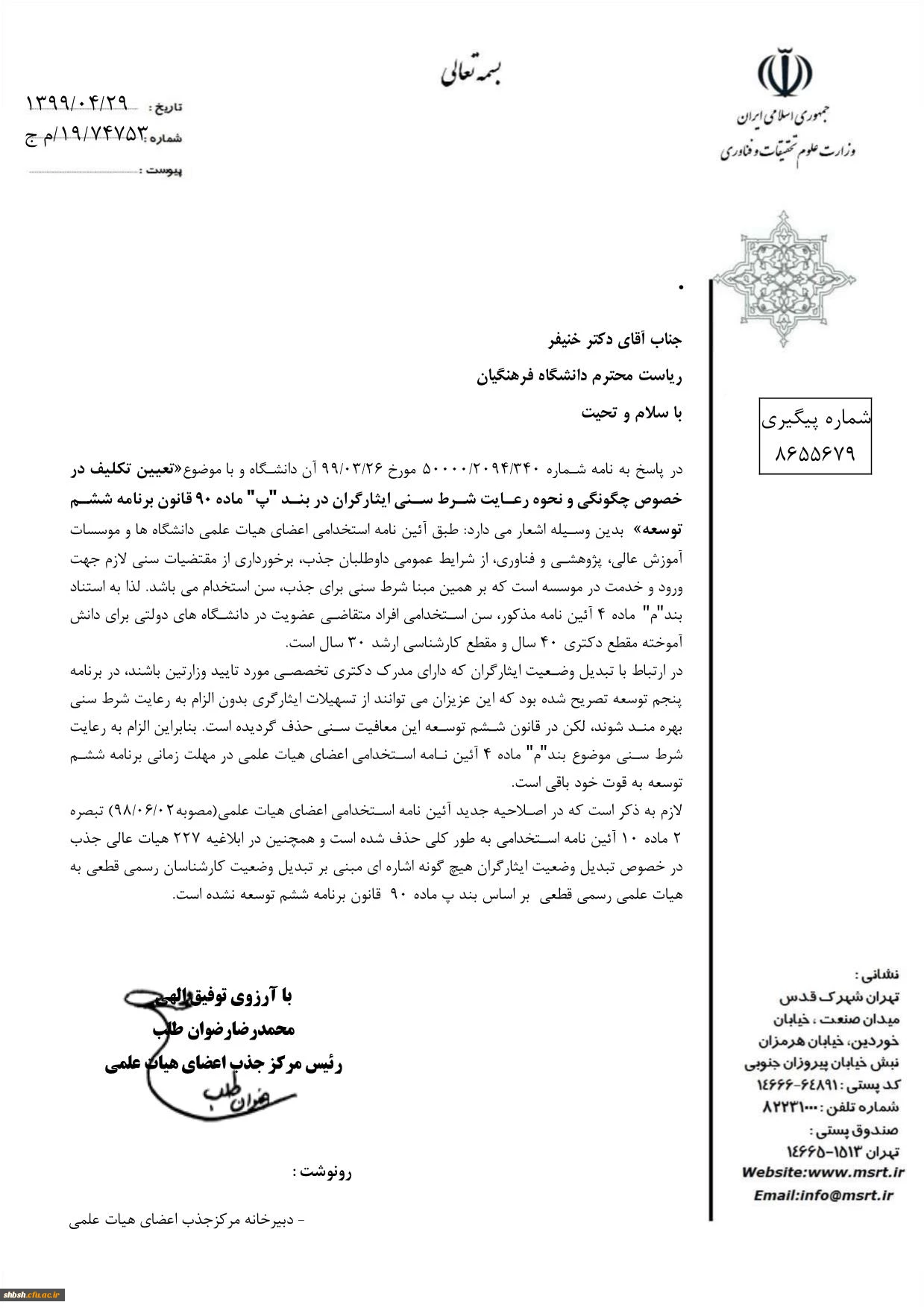 امتیاز دهید : تعیین تکلیف شرایط سنی تبدیل وضعیت کارشناسان به هیات علمی (بخشنامه وزارت علوم) 2 چهارشنبه 29 مرداد 1399 ساعت 13:35