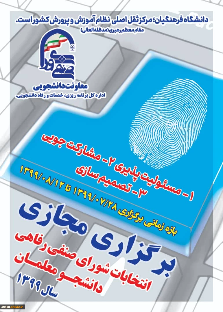 امتیاز دهید : برگزاری مجازی انتخابات شورای صنفی رفاهی دانشجومعلمان سال 1399 2 سهشنبه 29 مهر 1399 ساعت 11:09