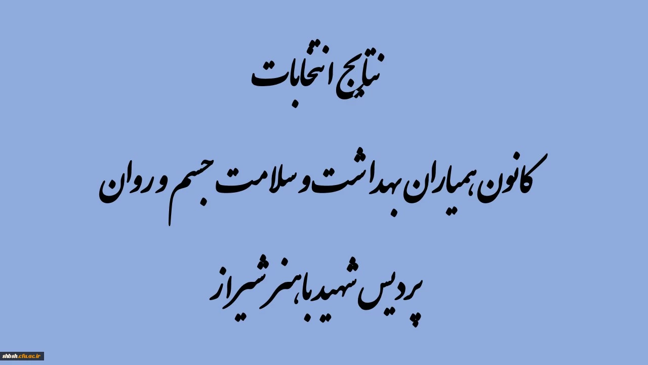امتیاز دهید : نتایج انتخابات کانون همیاران بهداشت و سلامت جسم و روان پردیس 2 شنبه 13 دی 1399 ساعت 11:45