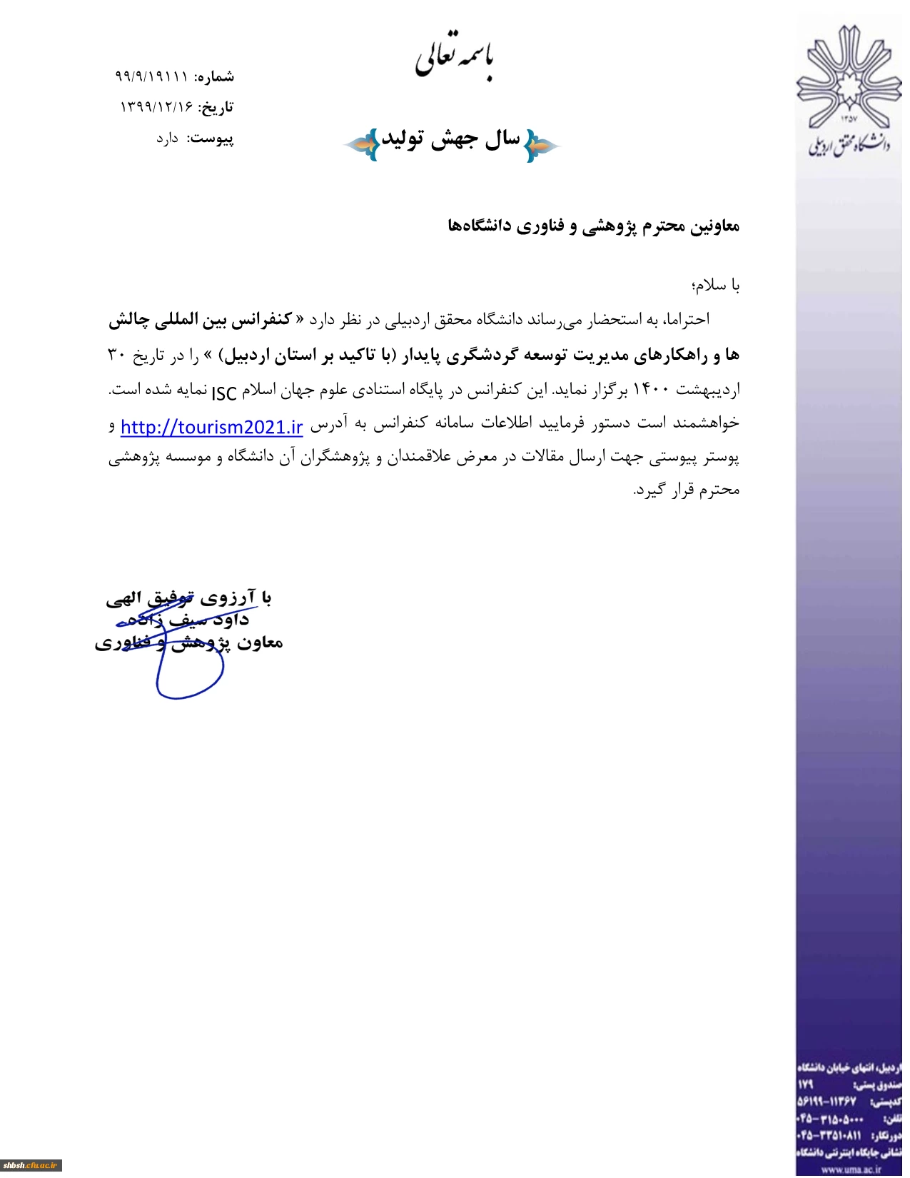امتیاز دهید : فراخوان مقاله " کنفرانس بین المللی چالش ها و راه کارهای مدیریت توسعه گردشگری پایدار " 3 چهارشنبه 20 اسفند 1399 ساعت 12:11