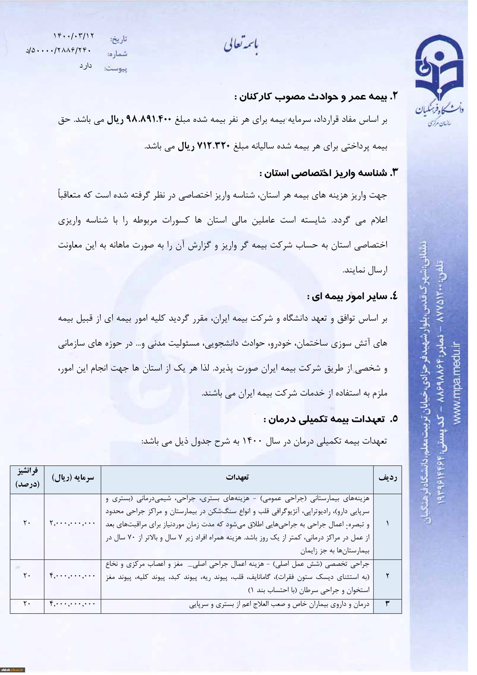 بخشنامه خدمات بیمه ای سال 1400 دانشگاه فرهنگیان 5