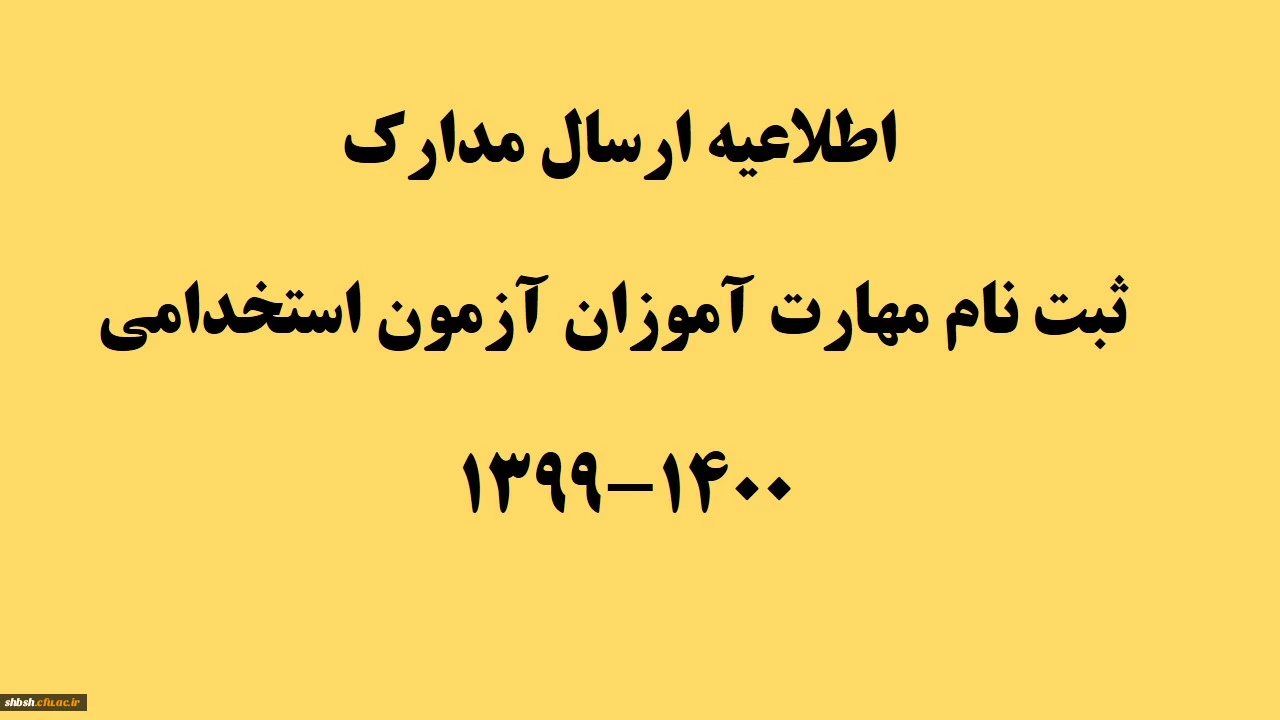 امتیاز دهید : اطلاعیه ارسال مدارک ثبت نام مهارت آموزان آزمون استخدامی 1400-1399 2 چهارشنبه 23 تیر 1400 ساعت 10:43