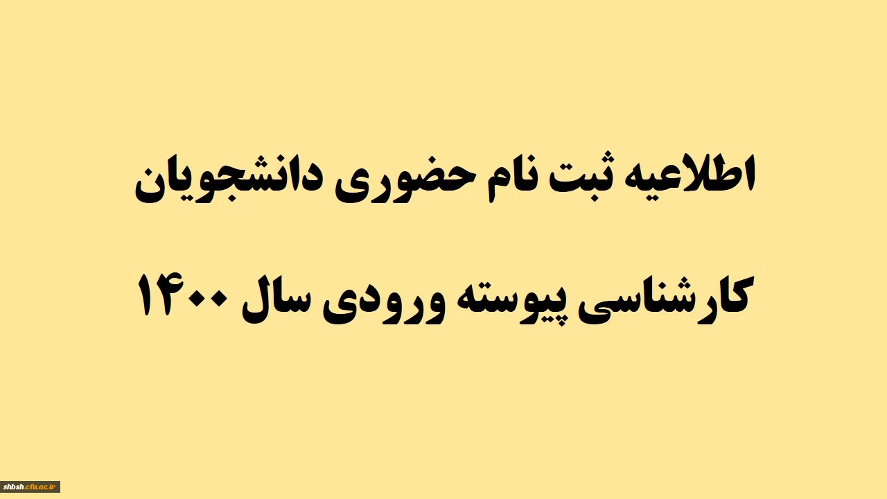 امتیاز دهید : اطلاعیه ارسال مدارک ثبت نام دانشجویان کارشناسی پیوسته ورودی سال 1400 2 شنبه 10 مهر 1400 ساعت 14:59