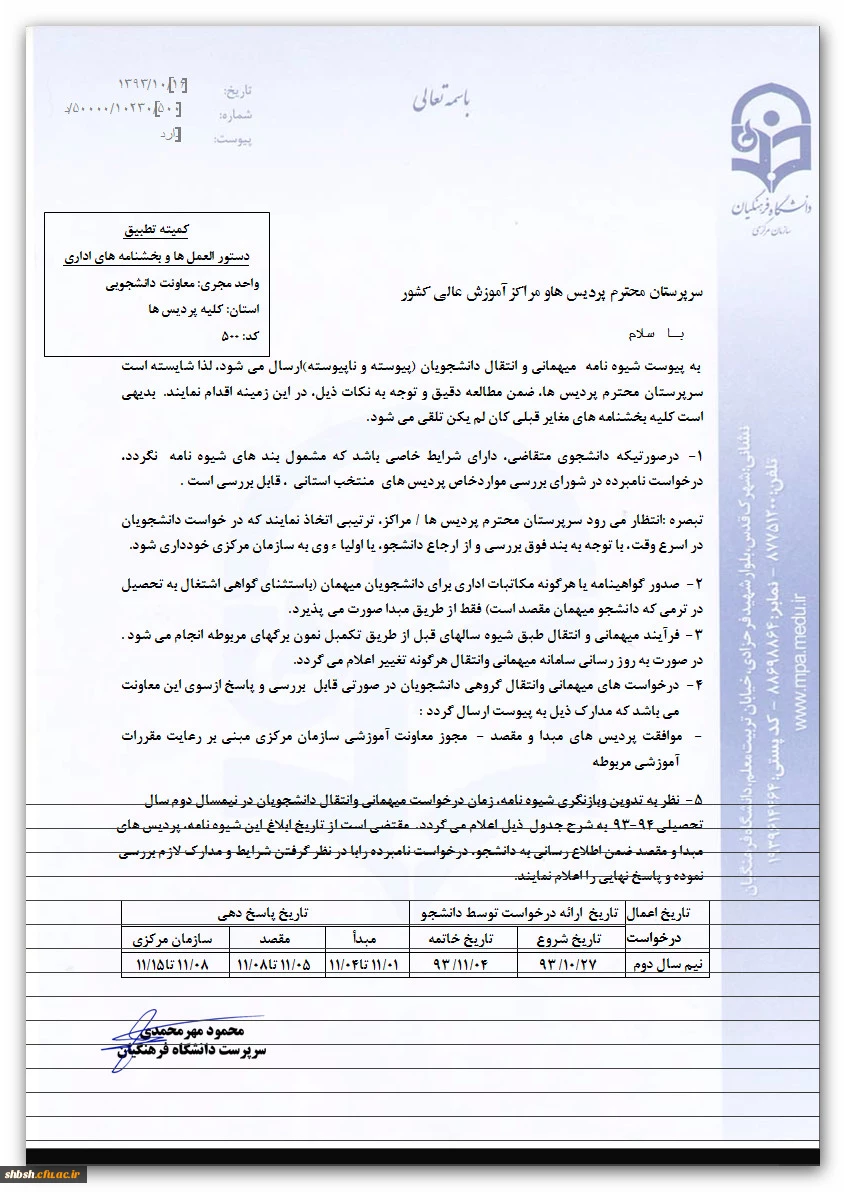 ساعات پاسخگویی به مراجعین محترم