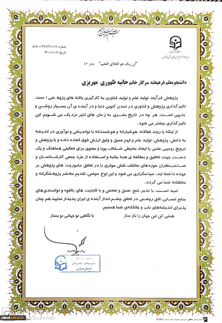 افتخارات پژوهشی پردیس شهید باهنر شیراز در سال 1400 5