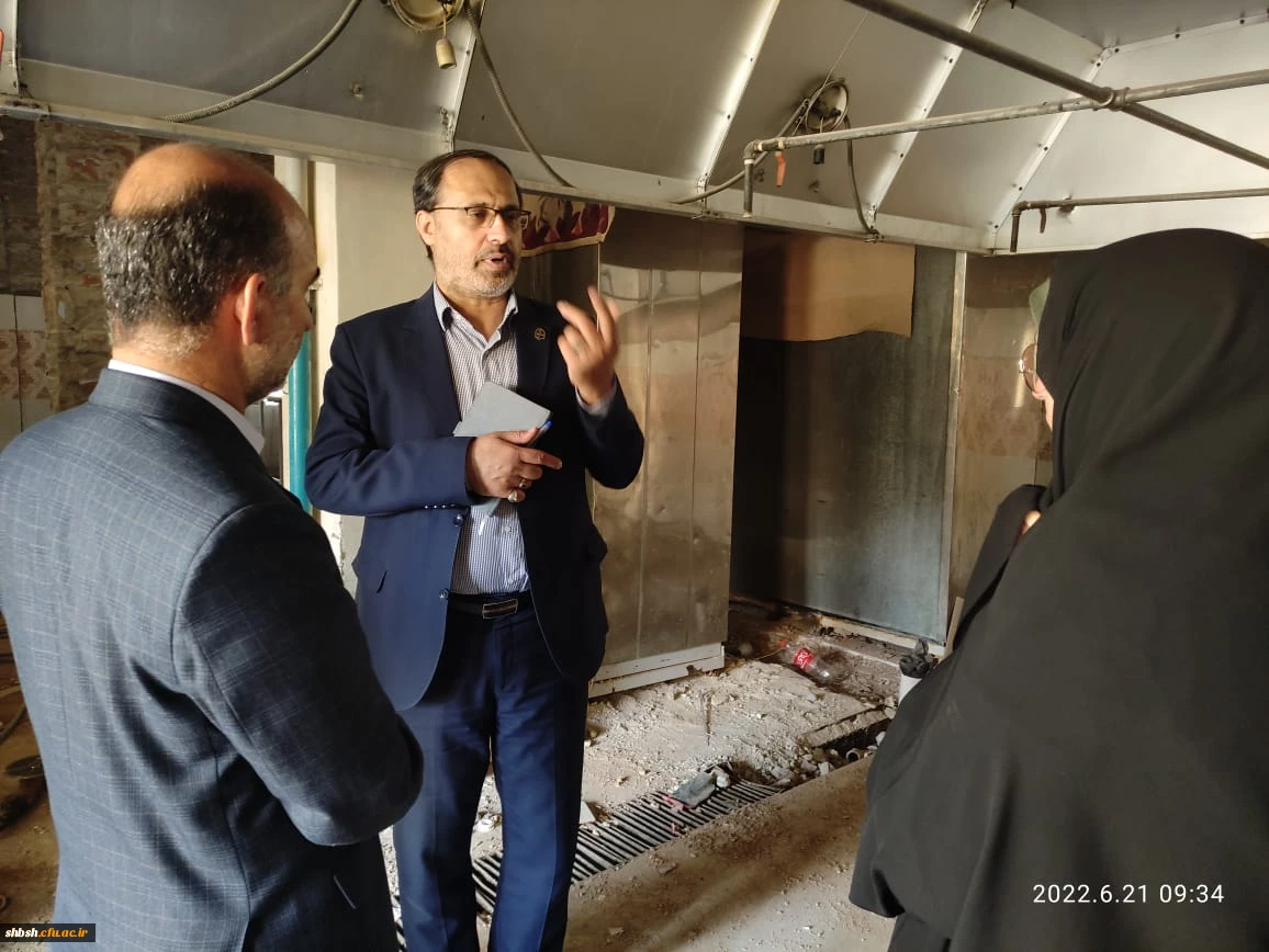 بازدید آقای دکتر میر یونسی مدیر کل محترم پشتیبانی و رفاه کارکنان در دانشگاه فرهنگیان سازمان مرکزی و آقای دکتر زارع شیبانی سرپرست امور پردیس های دانشگاه فرهنگیان استان فارس از میزان پیشرفت تعمیرات مجموعه سلف سرویس و آشپزخانه پردیس شهیدباهنر 10
