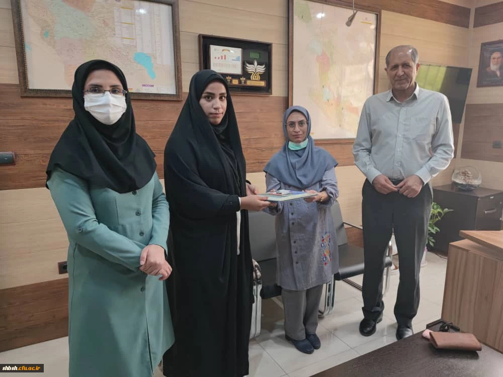 اهدای جایزه از طرف مرکز بهداشت به سرکار خانم سیده زهرا موسوی برای شرکت در مسابقه اینترنتی پیشگیری از سوانح و حوادث به مناسبت هفته جوان 2