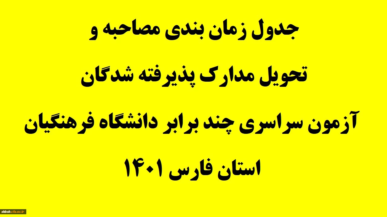 جدول زمان بندی مصاحبه و تحویل مدارک پذیرفته شدگان آزمون سراسری چند برابر دانشگاه فرهنگیان استان فارس 1401 2