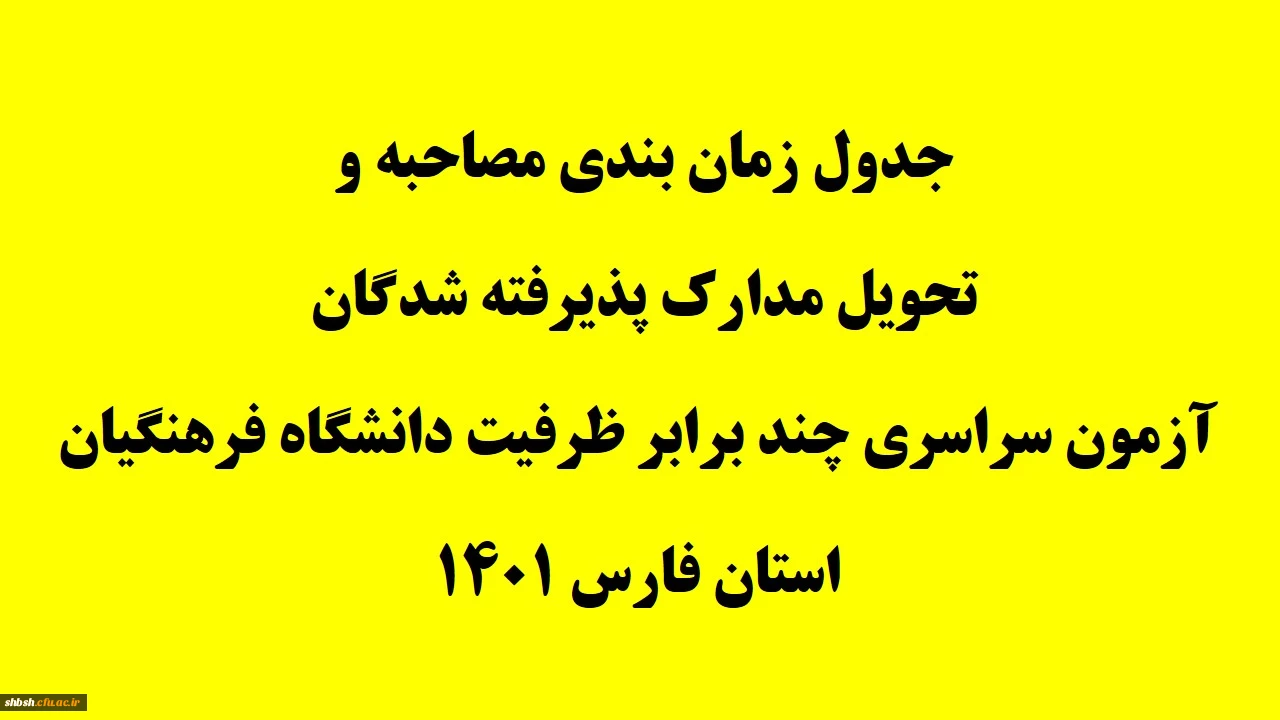 جدول زمان بندی مصاحبه و تحویل مدارک پذیرفته شدگان آزمون سراسری چند برابر ظرفیت دانشگاه فرهنگیان استان فارس 1401 2