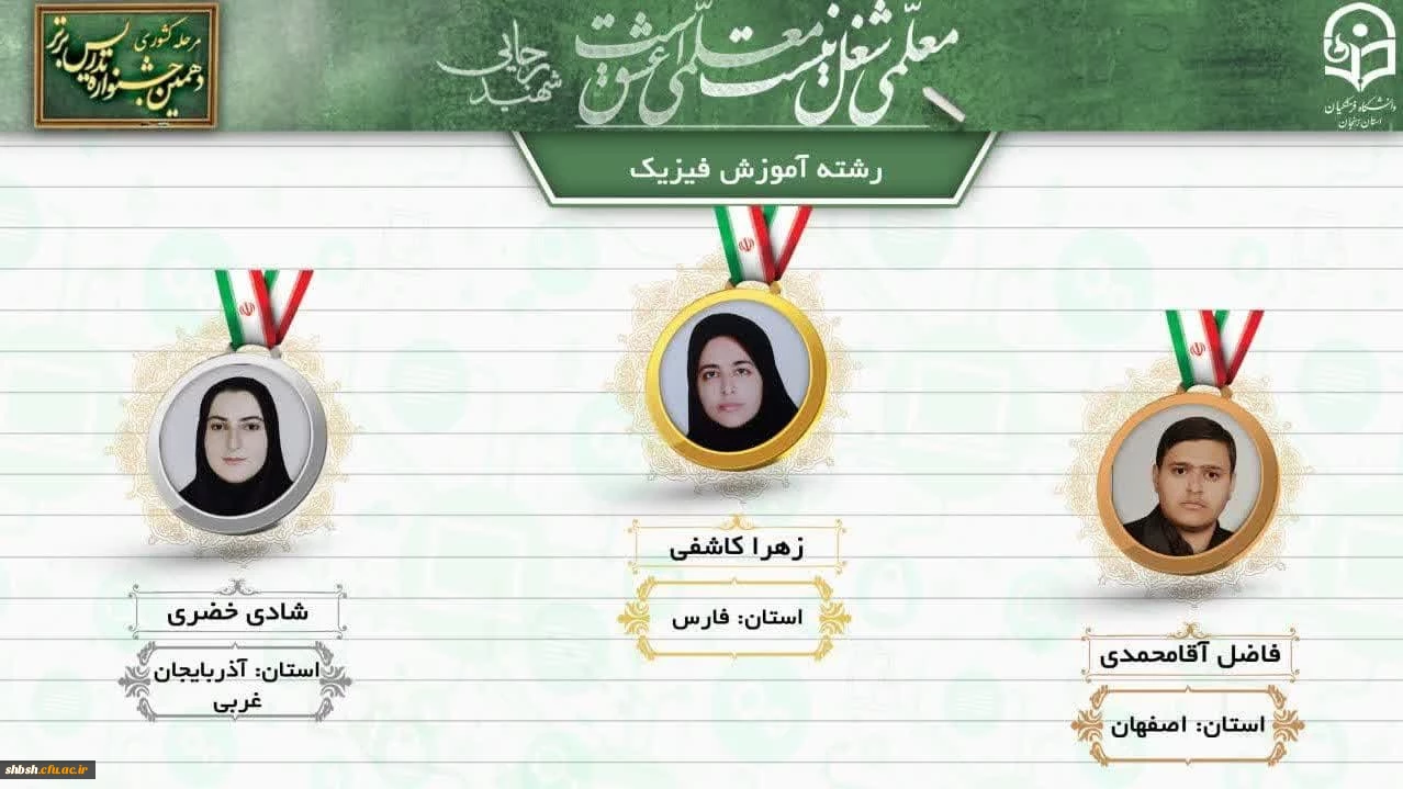 امتیاز دهید : کسب رتبه اول رشته فیزیک در دهمین جشنواره تدریس برتر دانشجومعلمان سراسر کشور 2 چهارشنبه 28 تیر 1402 ساعت 10:00