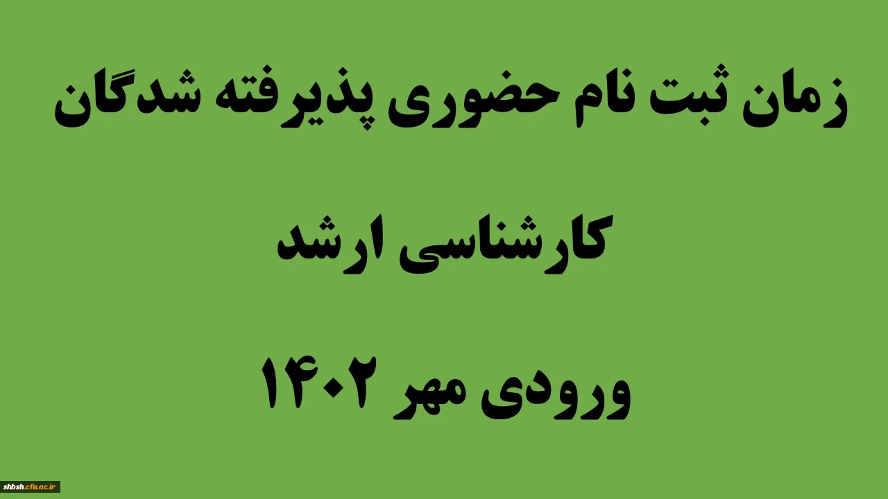 امتیاز دهید : زمان ثبت نام حضوری پذیرفته شدگان کارشناسی ارشد ورودی مهر 1402 2 چهارشنبه 22 شهریور 1402 ساعت 12:24
