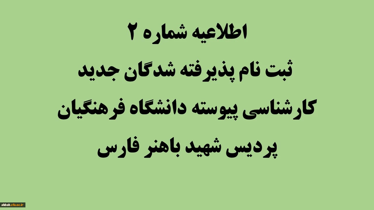 اطلاعیه شماره 2 ثبت نام پذیرفته شدگان جدید کارشناسی پیوسته دانشگاه فرهنگیان پردیس شهید باهنر فارس 2